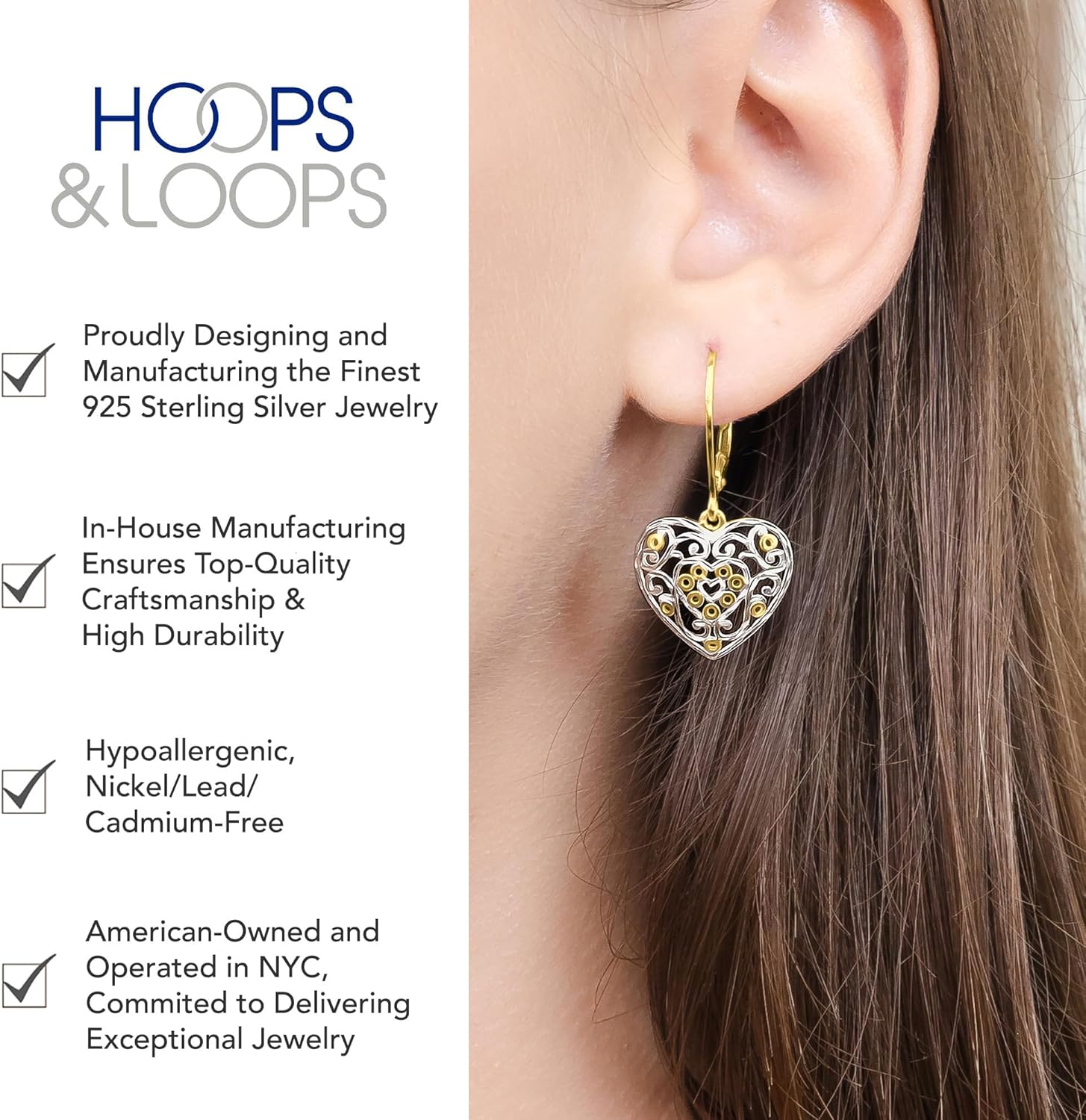 Hoops & Loops 925 Sterling Silver Heart Filigree Dangle Leverback Earrings for Womens Enhance Your Everyday Look and Feel Beautifully Empowered with Hoops & Loops Stylish Trendy and Fashionable JewelryPure Solid 925 Sterling SilverNickel-Free, Lead-Free, HypoallergenicSecured with Leverback Closure4 Color Options: Silver, Yellow Gold & Rose Gold Flashed, Black Flashed Sterling Silver Highly Polished to a Magnificent ShineLightweight Design, All Day Wear ComfortAmazing Gift for your Loved One Comes with a Jewelry PouchReady For Gifting