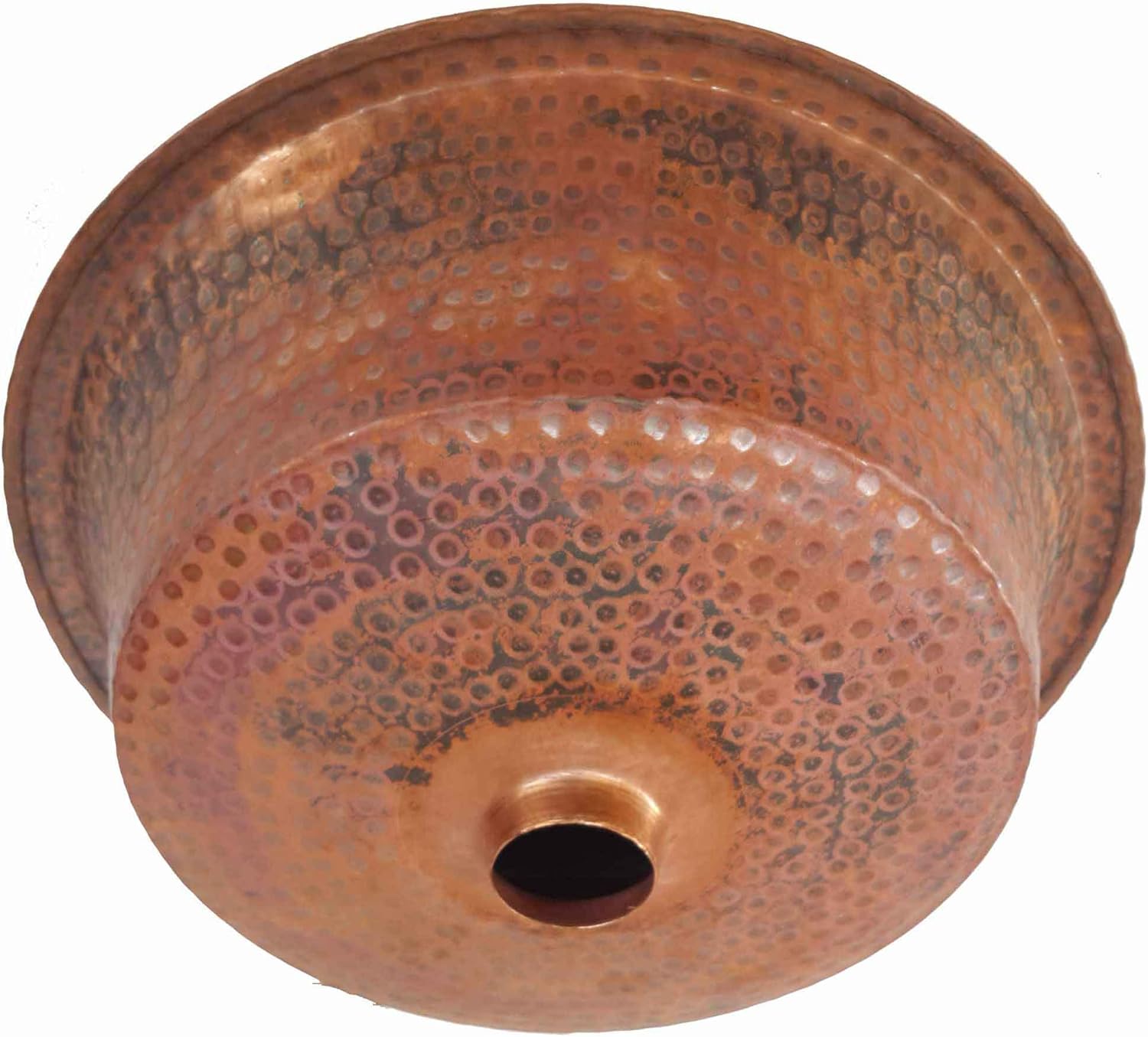 Size: 13X13X4 inches. Shown drain cover is not included. Imperfections to be expected due to hand making.Copper has the best combined properties of any other metals as it is durable, recyclable, earth friendly, natural and reusable. Copper has been used for buildings, bridges, weapons, decorative jewelry and hand tools for long time through history. Copper is highly sensitive to heat conduction, spreads heat evenly and saves energy. Copper cookware comes in original bare surface or tin lined based on type of the food. Copper reacts with various elements through time. Natural copper oxidation will add beauty to any decor. Enamel clear wax will help to minimize the oxidation process. Copper maintenance includes avoiding water spots and using soft cloth and regular water to clean copper surface. Our copper bathroom sinks products are lead and mercury free, eco-friendly and green solution to implement the practices that will lead to healthier living for the planet and our future generations. We do not use recycled copper to hand make our copper sinks. We use pure, virgin unsealed copper.
