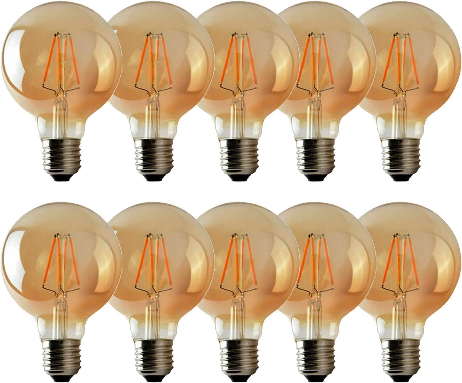 Specifications:Type: LED Dimmable BulbModel: G95Bulb Base: E26Illumination Angle: 270Lumens:450lmColour temperature:2700KWattage:4WVoltage:110V-240VLife Span:25,000 HoursMaterial: Glass, MetalBulb Colour: AmberPackage Content:6 x Light Bulb