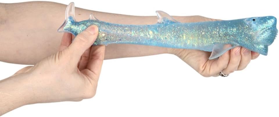 This 6" Squeezy Sugar Shark is soft, squishy, and textured like sugar. Ideal for stress relief and fidgeting, it adds a touch of playful fun to any collection.