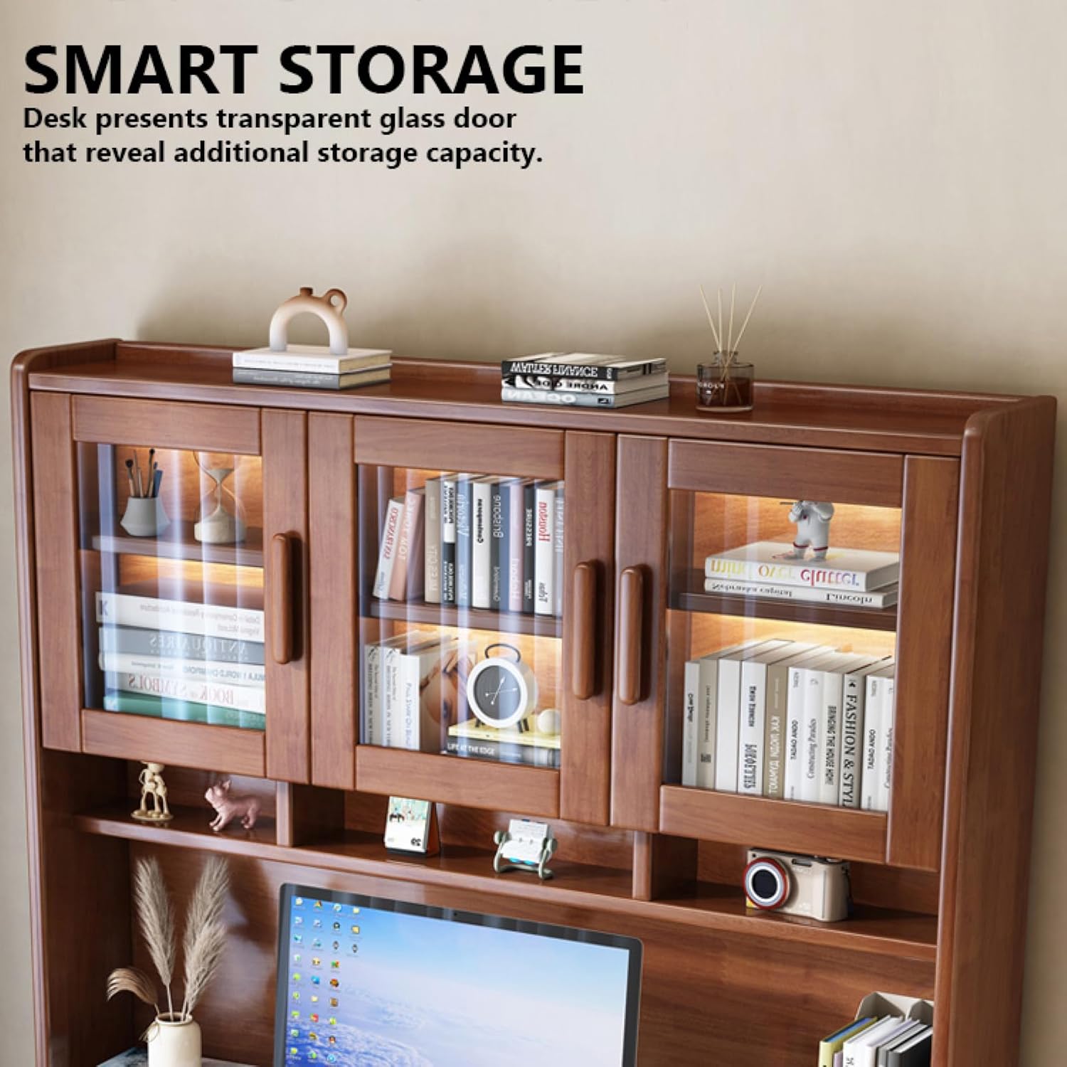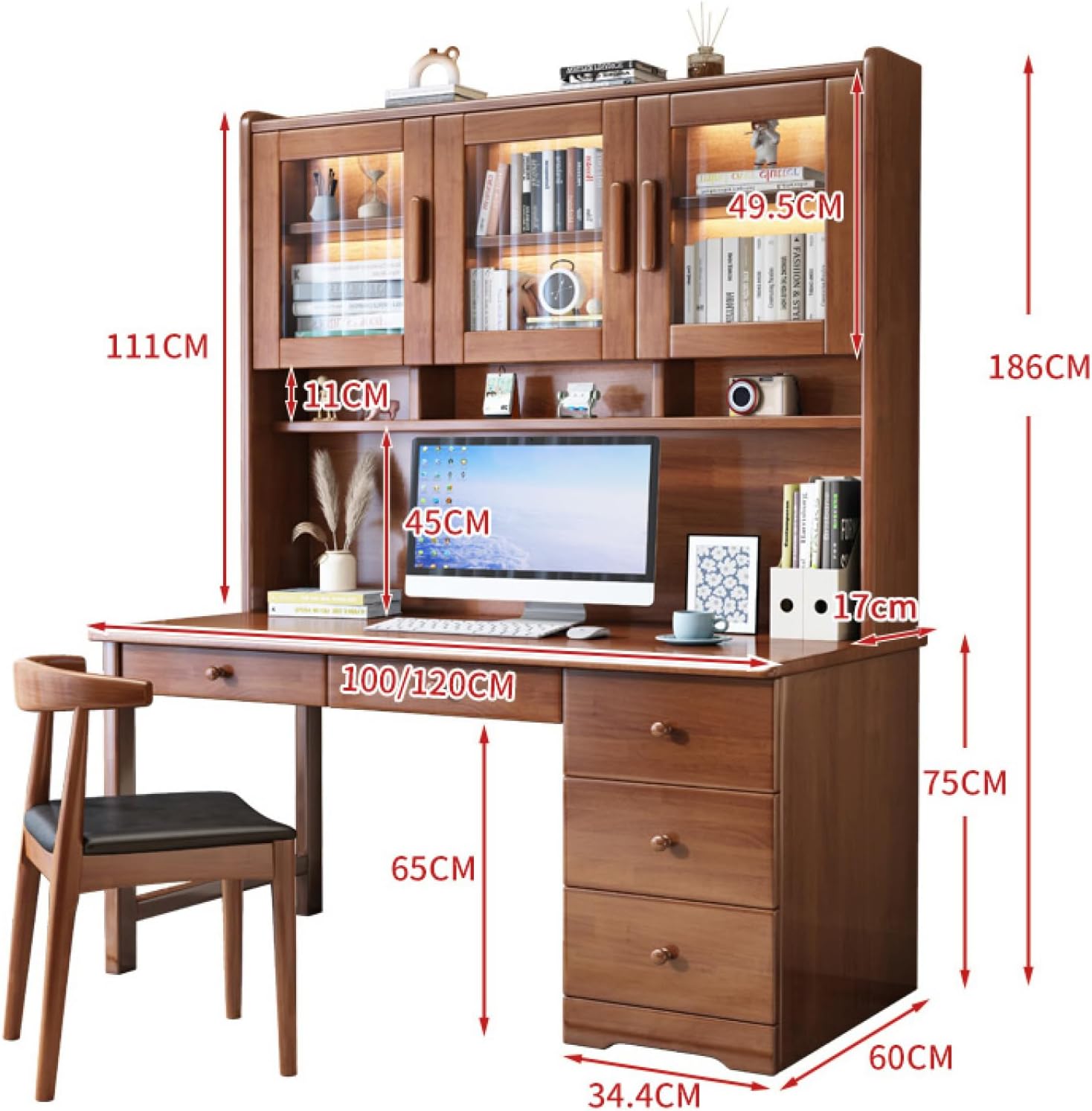 Home Office Desk with HutchAre you in need of space saving computer desk for your dorm or apartment? Our compact work desk is born for that. With a hutch above the tabletop, it ensures enough storage area while not occupying extra floor space in your room. The compartments above and under offer sufficient storage space for stuff in all sizes and the premium material makes the whole construction sturdy and durable. And there is also an anti-toppling device for safety use. Whether it is used for a child's desk or an adult writing desk, this desk is built to last. Just get one and you would find it values for money.Spacious Storage SpaceIn addition to the five drawers underneath the desktop, the desktop also has two display shelves and a storage top cabinet. Designed to cater to various spatial needs.Multipurpose desk adds function and style without overwhelming the space. Looks great in your living room, family room, home office, bedroom or condo. Provides plenty of space for office work, studying, writing or gaming.
