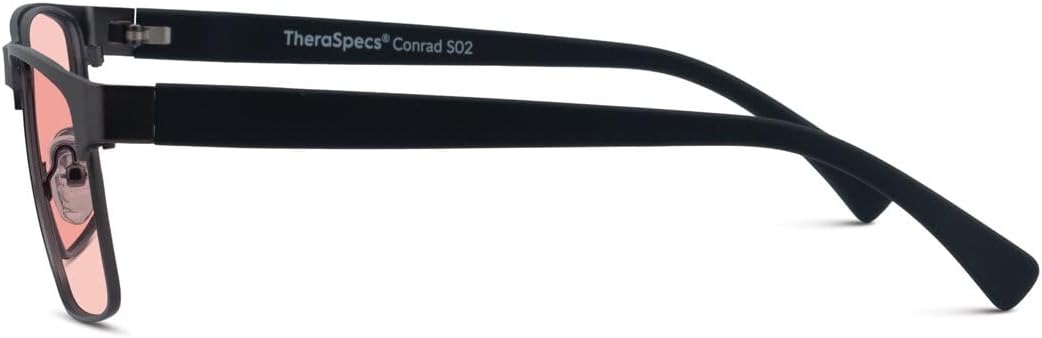 Conrad TheraSpecs sport a contemporary design that provides strong light protection that will keep you comfortable all day. The Conrad frame has slender rims with a matte gunmetal grey finish, which together accentuate its light-filtering lenses. Indoor TheraSpecs are great for wearing near artificial light, such as fluorescents and LEDs, and while working on a computer. Some people also like wearing them outdoors on overcast days. Outdoor TheraSpecs are darker, polarized and offer protection for bright sunlight. All TheraSpecs are 100% UVA/UVB (UV400) blocking and use the FL-41 tint. Conrad TheraSpecs come with a microfiber carrying bag.